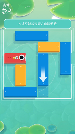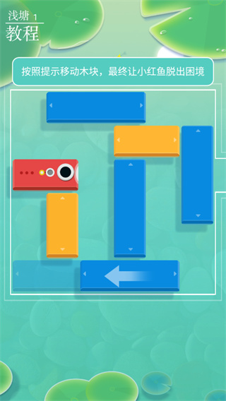 2、按照木块长度方向,移动小木块,终让小红鱼逃出困境。
