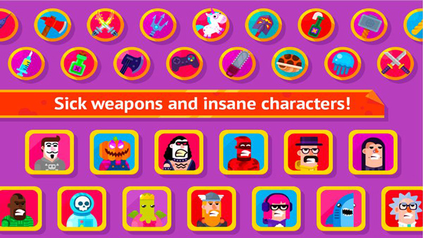 随着游戏的深入玩家可以逐渐解锁出多种角色,这些角色手中的武器可不是一成不变的,弓箭、匕首、标枪、注射器甚至是硫酸都有可能出现,暴力的斧头是小编最爱的一种。值得一提的是,游戏模式远不止双方互砍这一种,玩家还可以挑战射击对方头上的水果、天上飞动的鸟群等等,每一次模式的转换都是另一种“惨”况的出现,十分考验玩家的心理承受能力。