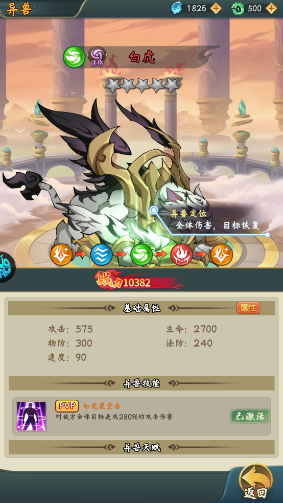 (1)白虎裂空击:对敌方全体目标造成280%的攻击伤害