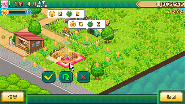 《森林露营之丘》是一款模拟经营手游,画面采用像素风格和明亮配色,让人感觉轻松愉快。游戏玩法简单,玩家可以在森林里探索、收集材料并升级自己的营地。你可以选择做自己喜欢的食物、钓鱼或捕蝉,体验自由的露营生活。通过吸引顾客赚取金币,可以购买更多土地,扩建营地,增加设施。游戏中还有丰富的挑战和任务,比如在不同季节调整货物种类以吸引更多顾客。布局设计也很重要,高处的位置通常更受欢迎,房子比帐篷更有吸引力。游戏支持多种语言,包括英语和其他10种语言,方便全球玩家交流。总的来说,这款游戏不仅适合休闲娱乐,还能锻炼策略思维,特别适合喜欢自然风光和轻松生活节奏的玩家。