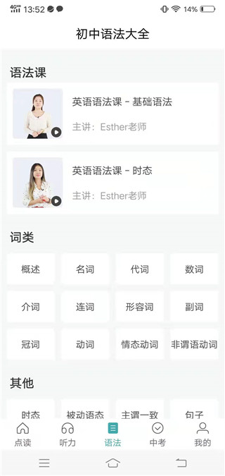 4、在语法界面,学生们可以通过观视频深刻的掌握语法;