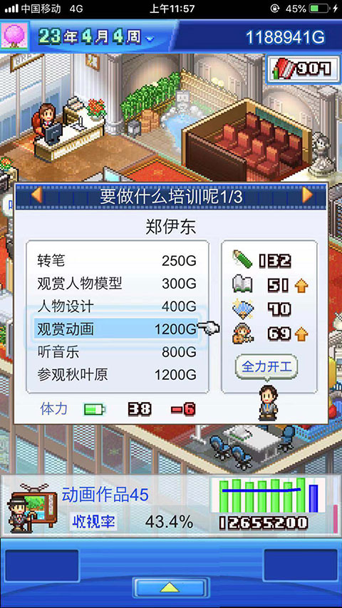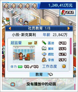 6、我们能够消耗员工的体力对员工进行教育,教育之后员工的体力会根据教育内容上升,而且根据员工职业的不同,还有可能发现新的动画制作内容。具体的解锁方式可以参考下方的传送门。