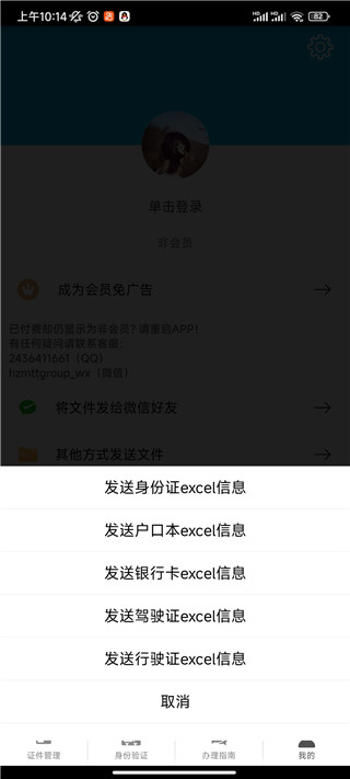 这个身份证管理app真的很好用!它不仅可以帮你轻松管理身份证信息,还能查银行卡账户啥的,特别方便。最牛的是支持OCR识别,单张批量都能搞,而且直接保存到Excel,导出也很简单,一键搞定。遇到问题也不怕,随时提交工作人员会及时解答。还有好多实用功能,比如线上身份验证、办理证件指南、合同录入助手等等,简直是个万能工具!特别是它的文件发送方式特别多,邮件、微信、QQ、蓝牙都能用,省心又省力。