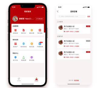 商户使用手机号登录app,手机号下关联的多个店铺可以自由切换,使用更加方便。