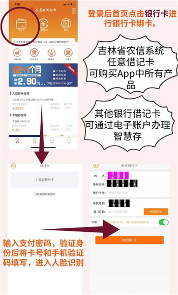 3、登录后首页点击银行卡进行银行卡绑卡,输入支付密码,验证身份后将卡号和手机验证码填写,进入人脸识别