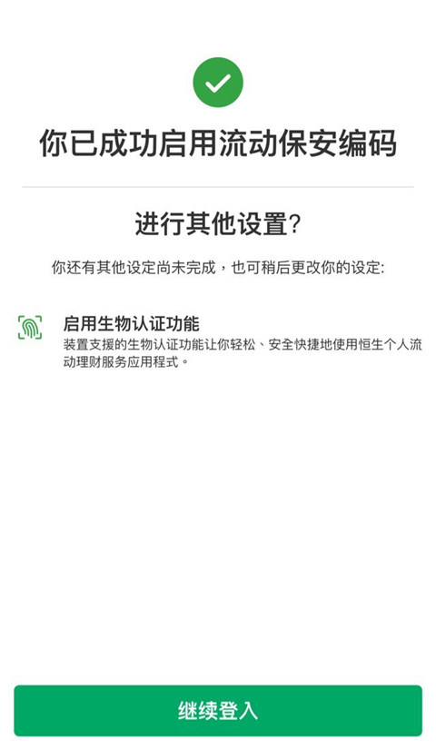 8、你已经成功启动流动保安编码,你可以即时使用"6位数字密码"登入App。