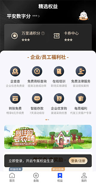3、点击【权益】页面后,可以根据自己的平安数字分获得各种各样的企业/员工福利。