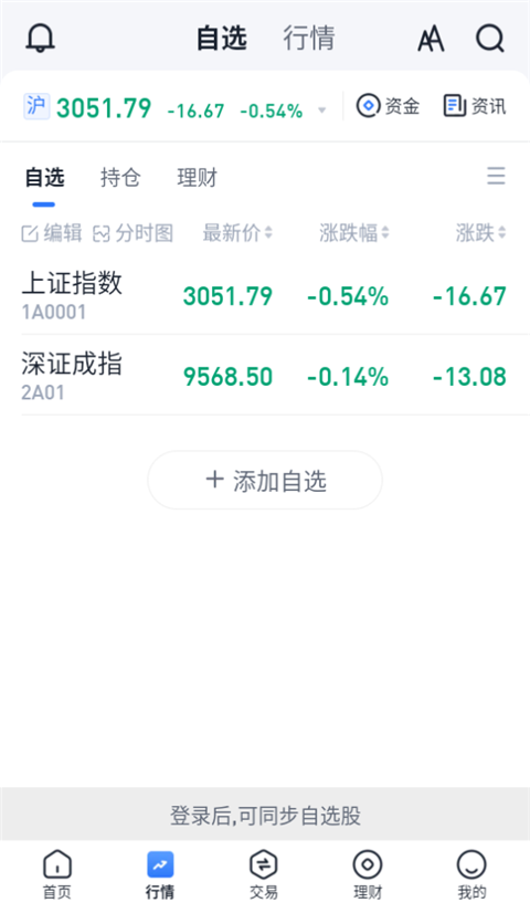 2、app可以添加自己购买或者关注的股票方便查看。