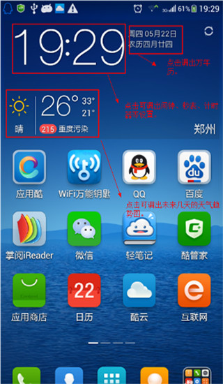 3、如果你安装后还没有选小部件,那可以试试,在小部件中查找最美天气(5*2)4*2的部件,然后按着将其拖进主桌面就可以了。当然它还有多个部件可以选择,你都可以试试,看看习惯哪种设置。我是喜欢这种时间大大的。
