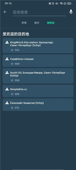 7、Windy蓝色版本支持搜索地方、地铁站等场景,也可以直接收藏区域;