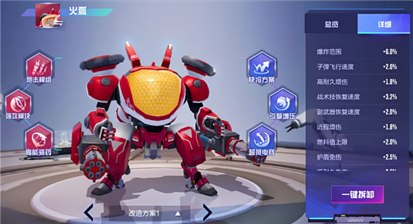 游戏美术风格偏向日式都市漫画风,场景设计唯美又有二次元气息,整体视觉效果很带感。火狐机甲作为游戏中的一款强力机型,拥有双持加特林和肩部导弹等强大武器,配合灵活的跳跃和护盾技能,在战场上表现非常抢眼。