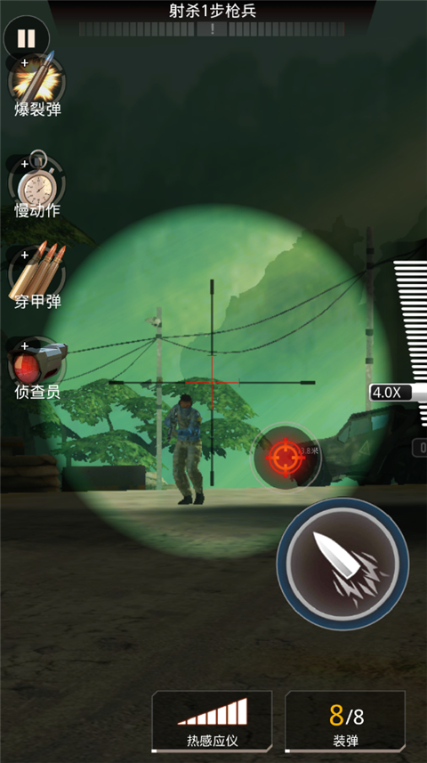 致命狙击游戏中超逼真战场还原,最新军事装备,在任务的过程中模拟隐藏作战,从瞄准到开枪由你决定,击败敌人还有慢动作镜头效果,让你体验最真实的军事刺杀体验!