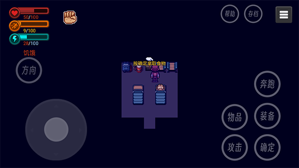 5、营地中有睡袋,可以睡觉,这能回复生命值,但是同时也会消耗活力值,并且只有在非饥饿状态才可以睡觉