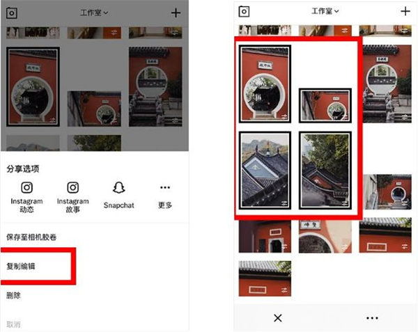 出现选项框,选择复制编辑(注:选择单张图片时才会出现复制编辑选项,如果点击不出来要注意看是否是选择广多张图片,多张长图片不支持复制参数。