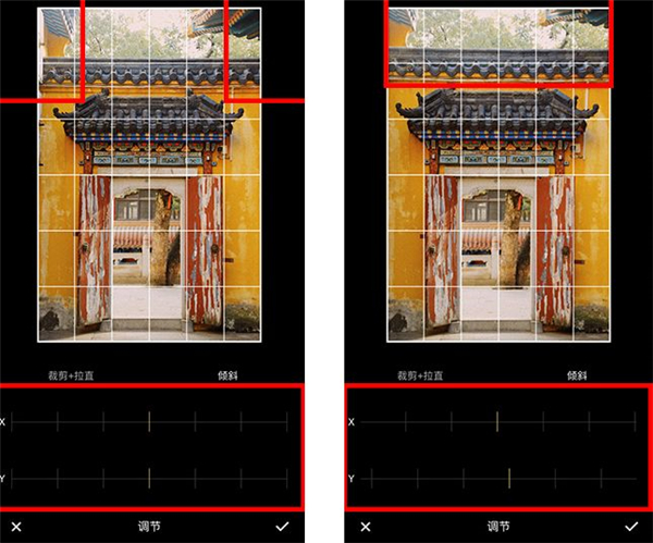 原图边角不是一条直线,画面有些畸变。通过裁剪工具里面的倾斜工具来调整使画面横平竖直。