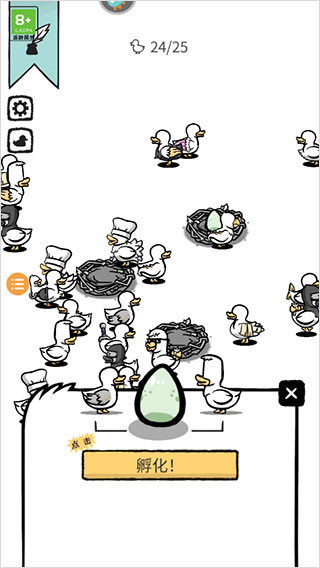 1、进入怪鸭世界最新版游戏后,首先点击窝里的蛋,对其进行孵化