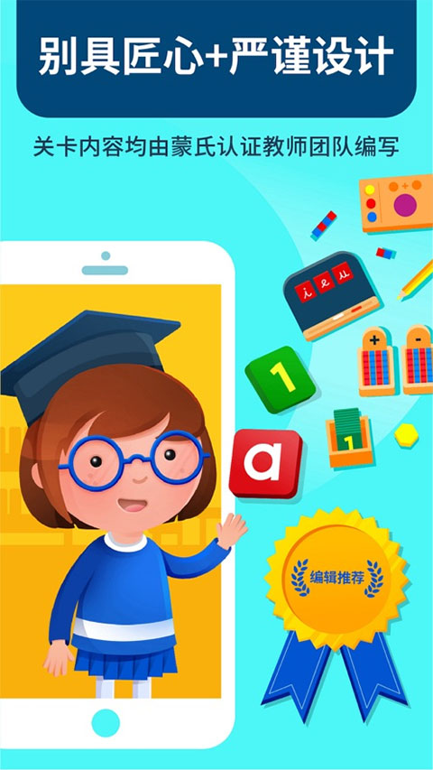 爱多奇的蒙特梭利幼儿园app是一款以蒙特梭利理念为基础,专注于孩子综合发展的学习应用软件。爱多奇的蒙特梭利幼儿园这款软件应用内有丰富的学习内容,可细分为以下领域:学编程与逻辑训练、学儿歌、学形状和颜色、生活小常识、艺术和创作、宝宝学说话、数数123、读写ABC,孩子可以探索颜色、语言、形状、儿歌、着色、逻辑、编程等概念,互动式的学习活动有助于激发孩子的求知欲望,让孩子享受自主探索的乐趣。除此之外,爱多奇的蒙特梭利幼儿园的整体界面进去就是一个幼儿园,按照中文教室、英文教室、数学教室、编程与逻辑和艺术创造力几个板块划分,基本上包含了幼儿学习的全部内容,有这一个就不用下载一大堆分科软件了。总而言之,软件融合丰富多彩的教学课堂工作经验,对于3到七岁孩子的学习特点来说非常不错的,有兴趣的家长可以下载爱多奇的蒙特梭利幼儿园app试试哦。