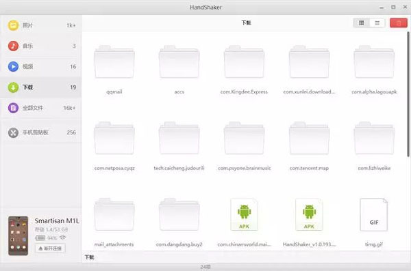 HandShaker官方版是由锤子科技(北京)有限公司研发的一款功能强大且好用的远程控制软件,也是连接手机和电脑之间的文件传输及管理工具,其不仅支持对手机外置SD卡中的文件进行管理,需要搭配电脑端使用,无需数据线,就可以远程无线连接,传输文件等,帮助用户更好的管理手机设备!同时,该软件的操作也很简单,用户只要将手机和电脑通过在同一wifi连接,就可以发挥它强大的功能,连接成功后随时管理手机中的各种文件,包括可删除和重命名图片、铃声、视频等操作,还支持传输多种文件格式,生成和下载,无需耗费手机流量,很轻松的就能够共享手机文件,非常方便!