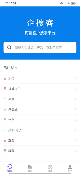 企搜客官方版是一款结合人工智能和大数据的智能查询平台,专门为企业挖掘潜在商机并进行精准推荐。它覆盖全国34个省市,涵盖工商、金融、司法等多个领域的数据,帮助用户快速获取企业信息。软件特色包括一键查询1亿+企业详细资料、深度整合客户管理系统、支持通话录音统计分析等功能。操作简单,注册后即可使用,搜索功能强大,还能根据行业筛选企业信息。最近的更新优化了隐私条款和通讯录保存功能,解决了运行不稳定的bug。作为用户,我觉得这个工具非常实用,尤其是对于需要拓展业务的企业来说,能够及时获取最新的商机信息,确实是个不错的选择!