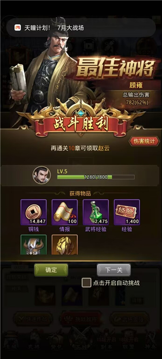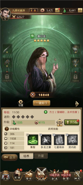 2.武将升级可少量提升武将的基础属性,包括攻击、生命、物防和法防。