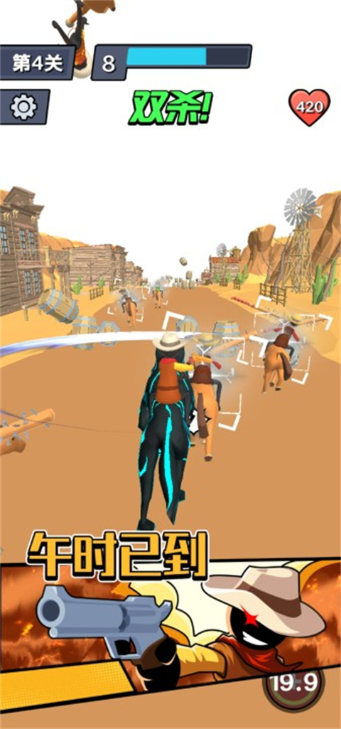 2、玩家可以选择不同的牛仔,每个牛仔有不同的技能,体验更多不同的玩法;