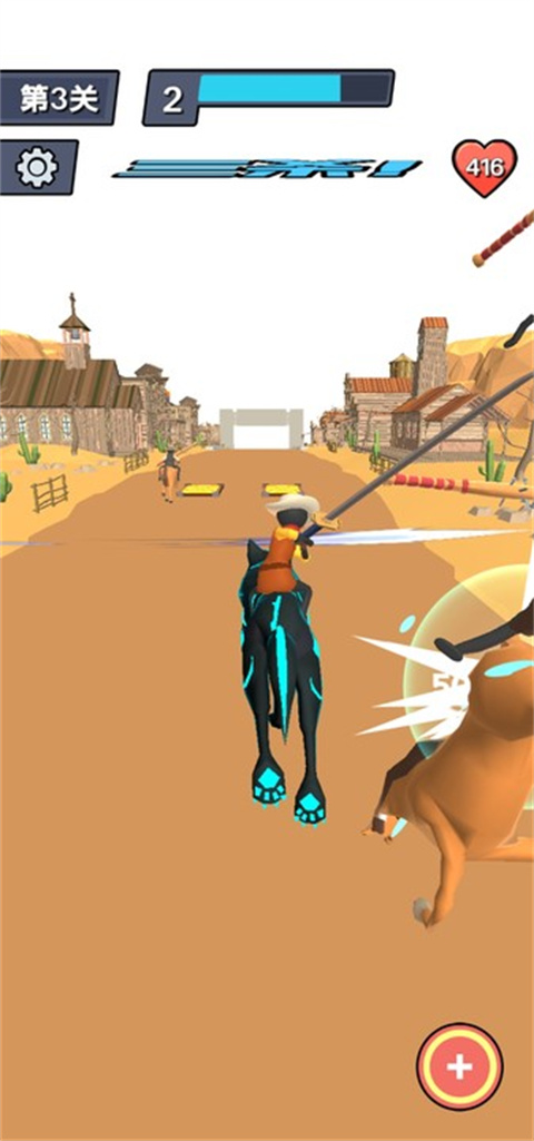 Ohayoo出品的游戏相信大家都有玩过,之前推出的《割草的100种方式》以爽快的割草玩法赢得了大量玩家的喜爱,而今天小编同样给大家带来了由Ohayoo推出的一款结合竞速和割草的爽游——疯狂牛仔最新版。该游戏以西部世界为背景,围绕牛仔竞速剧情展开,游戏中玩家将扮演的是一位西部牛仔,选择出战的武器和马厩,进入游戏中玩家需要不断的击败前面的敌人,一边跑酷一边攻击敌人,在这期间还要躲避周围的木桶以及敌人的攻击。