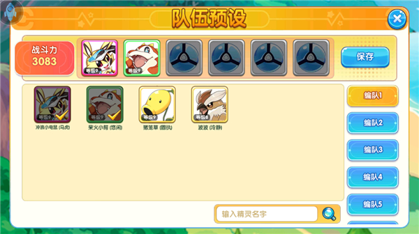 2、在这里玩家可以搭配不同阵容进行编队,完成编队点击保存