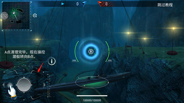 3、当前区域清理完毕后可以操作潜艇掉头去另外一个区域;