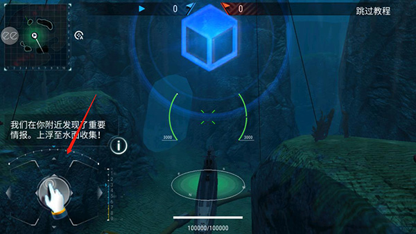 6、当附近发现了重要情报后,可以往上滑动操控潜艇上浮至水面收集情报;