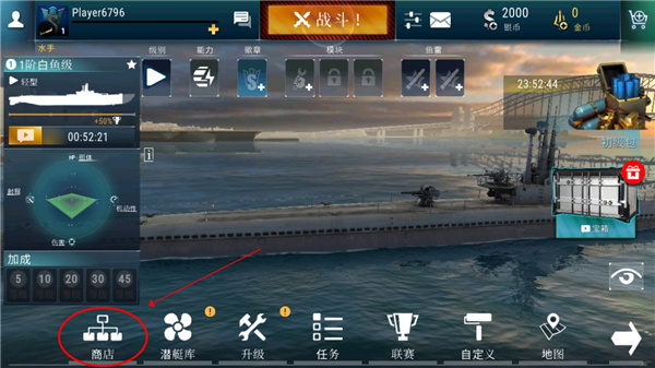 2、进入商店后,在左侧玩家可以看到详细的潜艇级别;