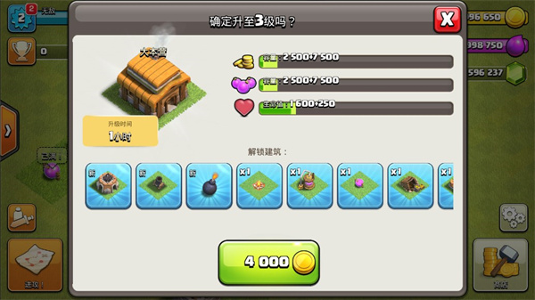 8、直到完成了可以升级大本营的所有建筑,就可以给大本营进行升级;