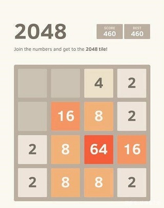在《2048》中,玩家控制数字方块运动,两个相同数字方块撞在一起之后合并成为他们的和,每次操作之后会随机生成一个2或者4,最终得到数字"2048"。