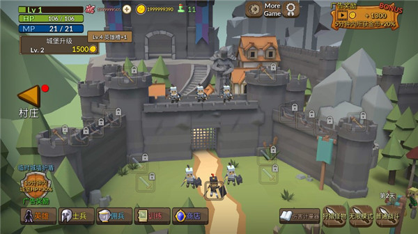 2、使用在村庄力获的装备和资源,强化城墙,保护城堡。