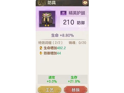 2、防具:影响着英雄的生存能力,可根据词条特点分为基础防具与功能防具。基础类防具主要增加生命值和双抗,而功能类防具则提供额外效果,如反伤、闪避和抵抗debuff等。输出型英雄需选择基础类防具以提高生存能力,而辅助型英雄则可以根据需求选择功能类防具,让队伍的战术更加多样化。