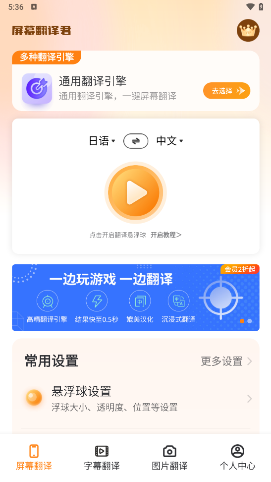 更易用,单击悬浮窗即可在任意界面全屏翻译,无需切换界面;支持自动翻译,快速翻译聊天输入框中的文字。