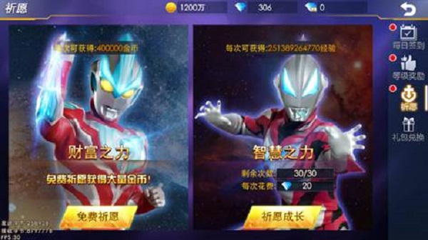作为光之国的战士,光之国还是可以尽自己所能帮助自家孩子的。可以祈愿就可以获得大量的经验。