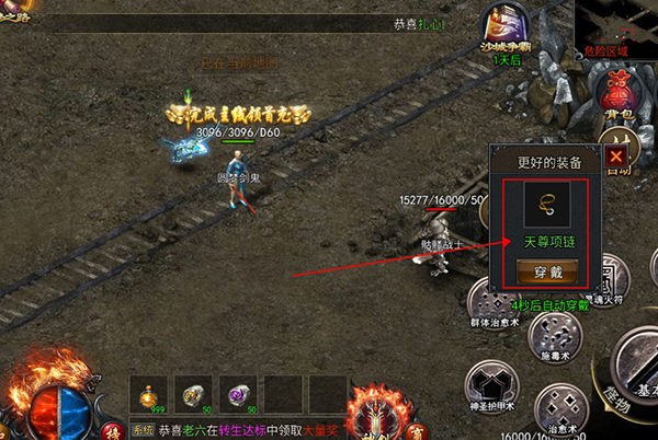 2、玩家在进入地图挑战时击败怪物会随机掉落装备,点击右边的装备就能一键穿戴。