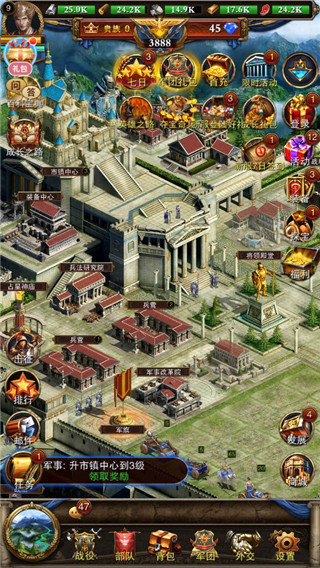 提升科技等级,可以增加各种资源产量的百分比,科技越多、等级越高,增益效果也会越明显。只需点击打开军团,点击研究,就能在众多科技选择自己需要的科技