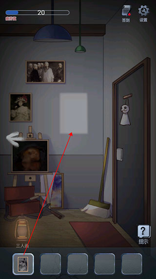 8、然后切换到最右边场景,把相片放上,并看到图片亮起的顺序,并记住相片里的人数作为密码。