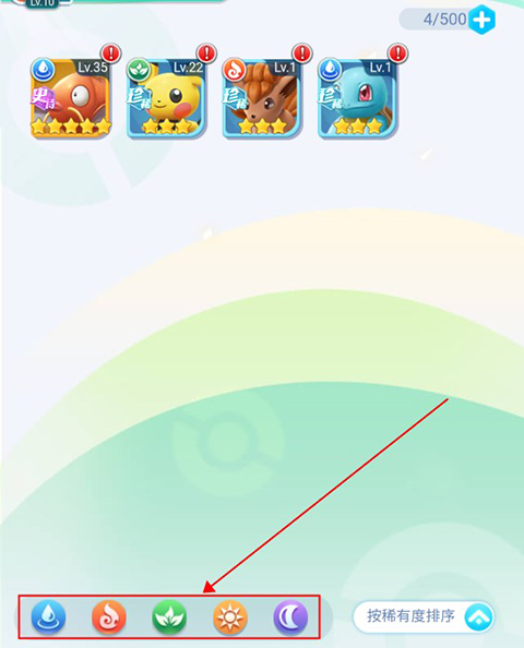 游戏内一共有水、火、自然、光明、黑暗五种类型的宠物,每种类型都有独特的属性和技能