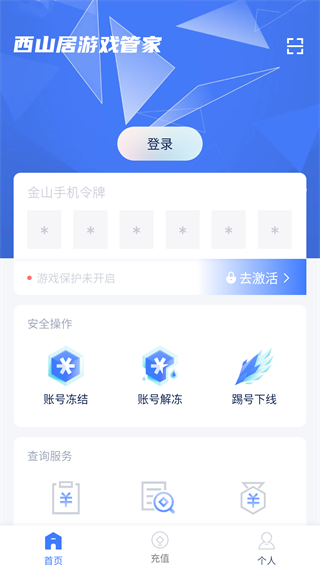 西山居游戏是一家网络游戏制作商,主营业务为手游、端游制作、发行,已经开发出了《剑侠情缘》系列、《九天神话》、《月影传说》等游戏,致力于为用户提供优质的手游、端游产品,本次小编要为各位小伙伴推荐一款由西山居官方推出的游戏安全与服务聚合工具——西山居游戏管家,原金山手机令牌。软件囊括原金山手机令牌app提供的密保服务,除此之外,还有账号管理及查询服务、游戏充值服务等,用户运用该软件不仅可以轻松的管理各个游戏账号,同时还可以查询各种服务,更支持一键快速充值,初次之外,当用户账号绑定西山居游戏管家时,将同步解绑其它密保工具,不需要再次手动解锁,更加的便捷安全。