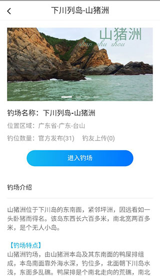 3、点击进入,可以看到钓场的介绍图片还可以进入钓场。