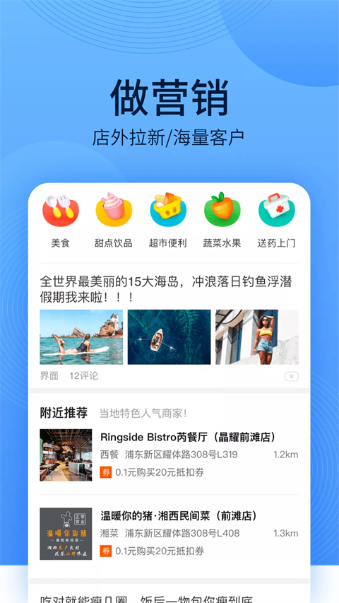 4、如果您是商铺用户,我们提供了小广告的功能。在小广告功能中,您可以向一定位置区域的用户发布您的广告,全面助力您的店铺推广获客