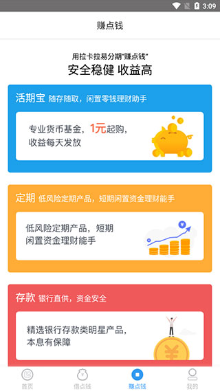 而且,这个app的功能真的很多,像是社区商城、游戏充值这些小功能也照顾到了日常需求。我还看到它有一个“赚点钱”的功能,好像可以存钱理财或者买基金,收益率还挺高的,这点特别吸引我,毕竟现在谁不想让闲钱生钱呢?总的来说,拉卡拉易分期app不仅适合需要应急借款的人,也适合想理财的朋友,真的是一个很实用的工具。