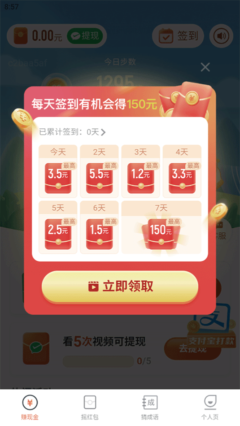 5、最后,就是每日的签到活动,直接获取现金红包哦;