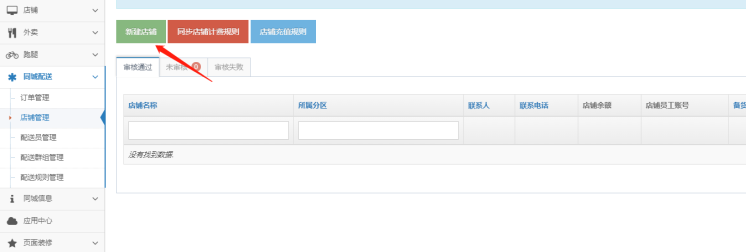 1、购买同城配送功能,总账号后台新建同城店铺。