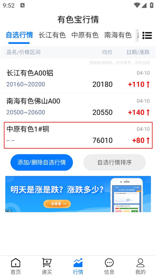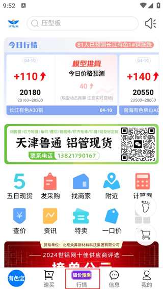 1、行情资讯:涵盖南海有色、长江有色、中铝报价、广东南储(华南)、广东南储(华东)、外汇中间价、中国宏桥、LME期货、LME现货结算价、中原有色等市场。