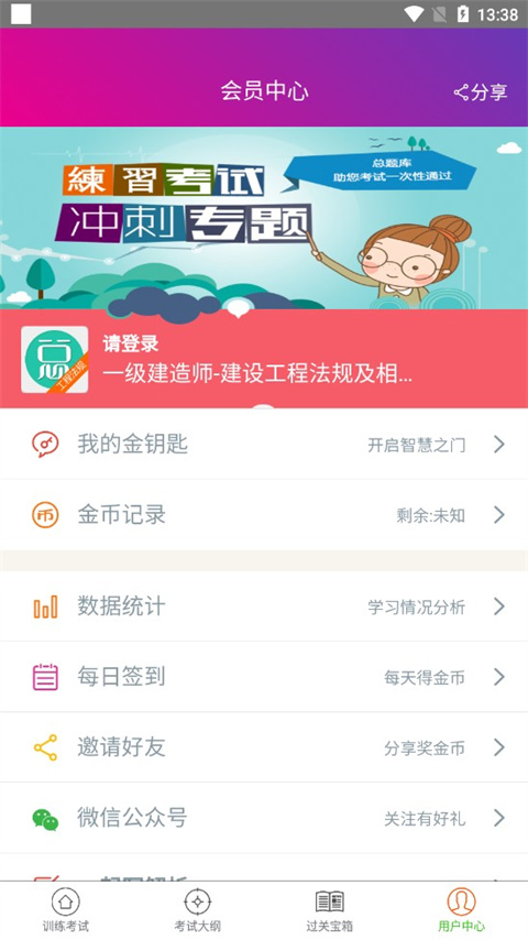 1、进入软件首页,可看到在顶端支持设置考试倒计时,督促用户努力学习;