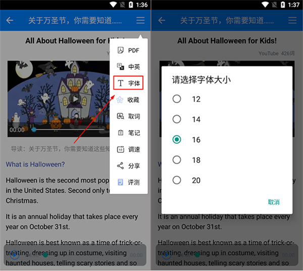 云端自动备份你的收藏和评论,数据永不丢失,在手机和电脑上都能查看。1、下载安装好英语头条极速版app最新版,点击右上方选项可更改字体大小,通过字体设置功能可以自由修改调整字体大小;