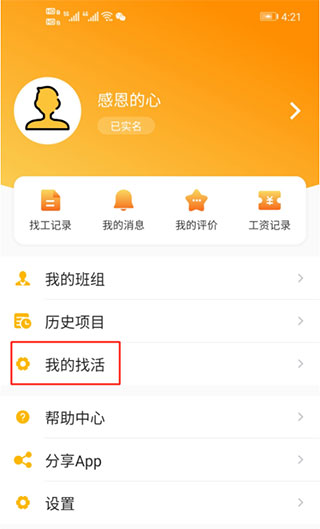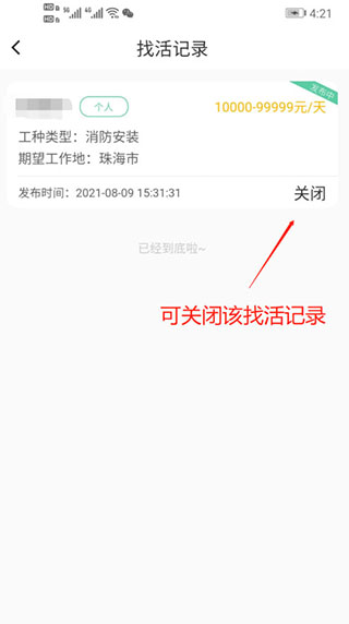 5、关闭找活记录。进入“我的找活”页面后,可查看找活记录